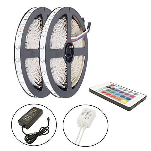 KAUFEN ALED LIGHT® Led Strip 2x5M (10M in Gesamt) RGB Led Strip,3528 SMD 600 LED RGB Lichtbänder Flexible LED Streifen Band mit 6A EU Power Supply Adapter+24 Key Colours IR-Controller. Ideal für Garten, Haushalt, Küche, unter Kabinett, Auto, Bar, Mond, DIY Verzierung Lighting [Energieklasse A]